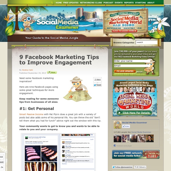 13 Facebook Marketing Tips From the Pros Republished from Social Media Examiner with Permission Facebook continues to be the most powerful social Notice the high level of engagement on this Facebook update! #6: Get creative when your Facebook readers ... View Doc